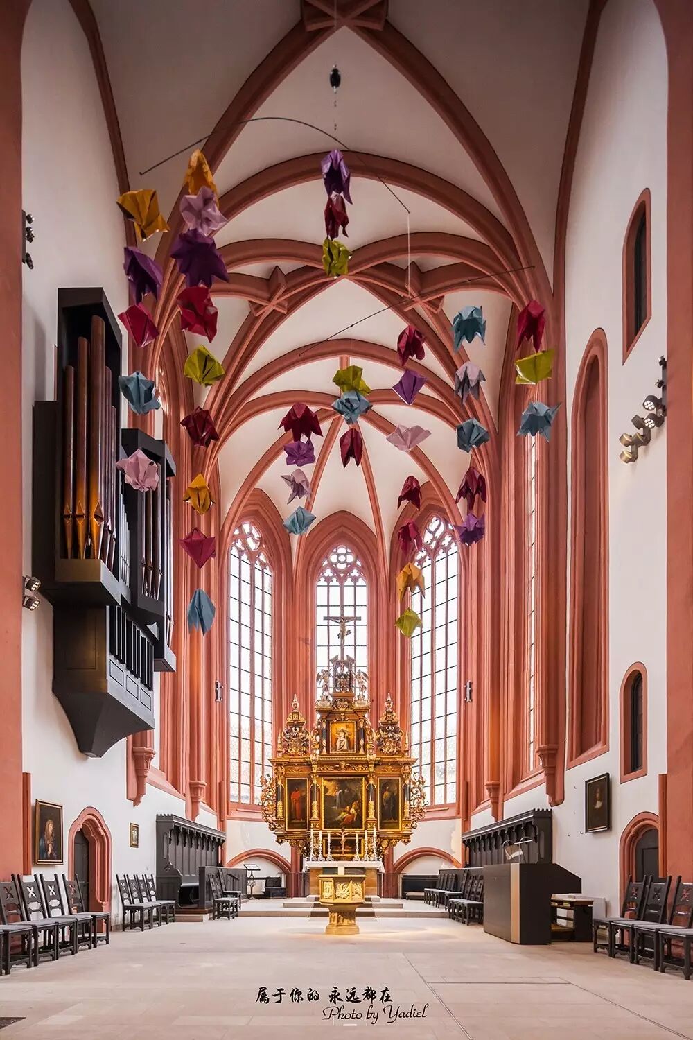 透过教堂高大的肋拱窗口,可以看到碧蓝广袤的天空,一缕缕刺眼的阳光在窗棂里肆意射入,以它辉煌的面纱笼罩众生。一步一步的走近它,想象着那些被尘世遗弃的人,双手捧着自己破碎的灵魂,用基督的圣语追寻一种心灵的救赎。