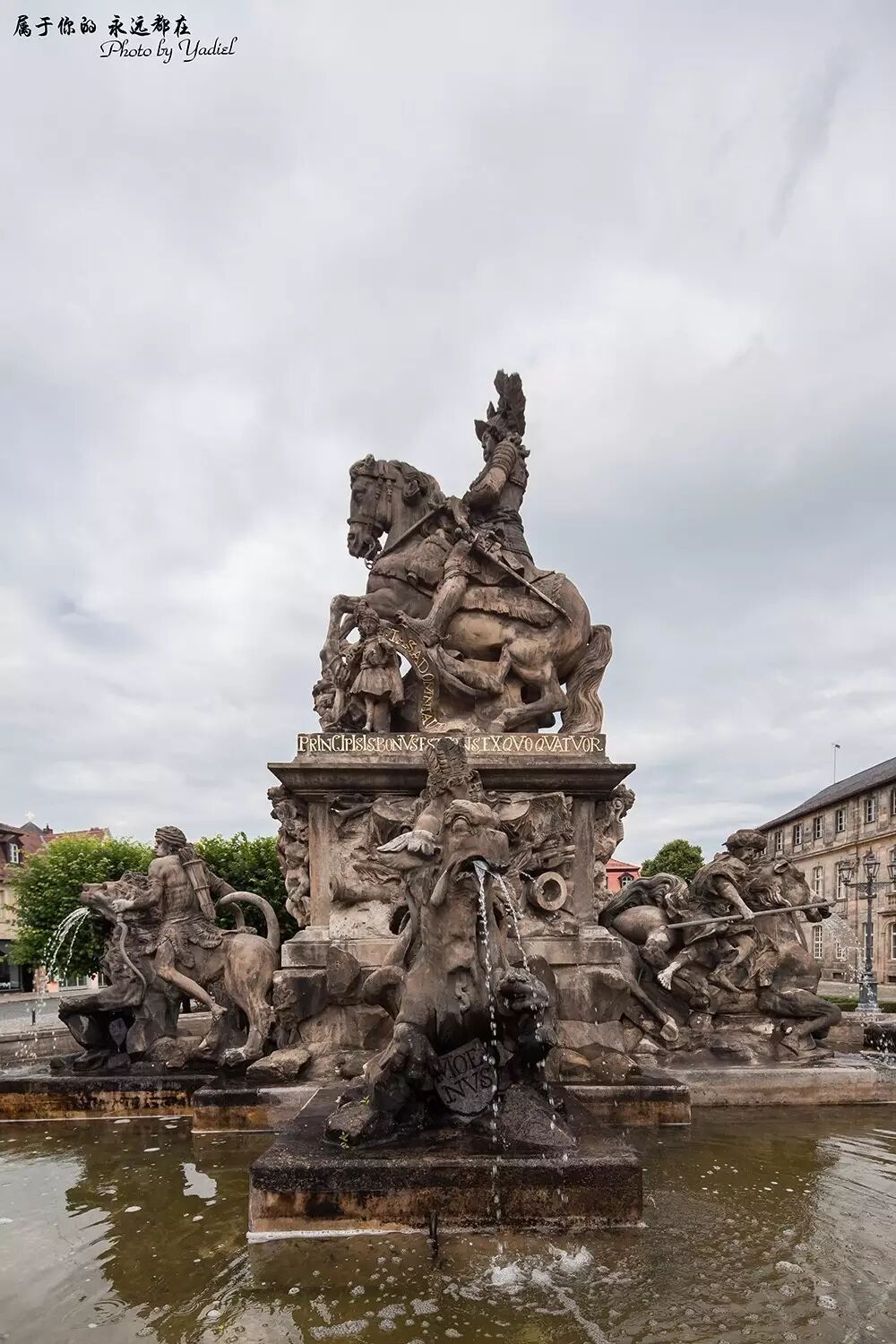 拜罗伊特是个十分优美的城市,城内外古迹众多,宫殿、城堡、园林和剧院比比皆是。途中经过一处造型十分独特的喷泉,四面狮头环绕。虽历经世事变迁布满青苔,但仍然能够感触到流水的坚贞,淡淡的诉说着永恒。