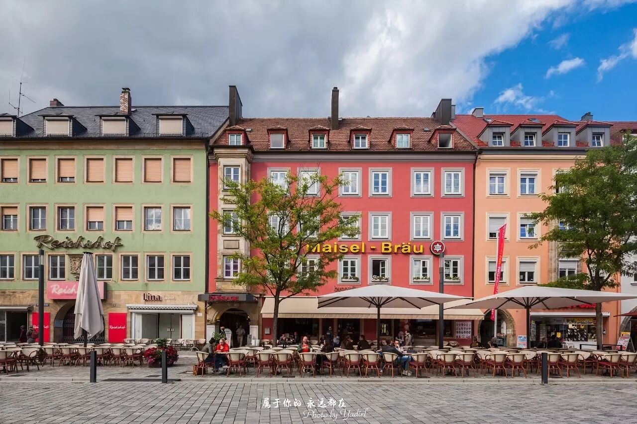 总体来说拜罗伊特的建筑是绚丽多彩的!走在这小镇的街道上,踏过石转路,手指轻轻拂过每座巍然而立的庞大建筑,斗拱交错,红瓦盖顶,一种沧桑的历史感油然而生。怯惧这里严肃的僻静,却又感到一种特殊的吸引。