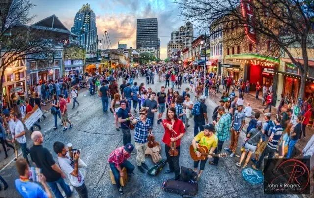 奥斯汀有近200家可以进行现场音乐表演的场馆,多以酒吧、咖啡馆和餐厅的形式出现。而它们的聚集地就是The 6th Street。奥斯汀的现场音乐表演一部分以乡村、布鲁斯为主,听众年龄较大。还有一些就是DJ打碟那种夜店风,年轻人居多。 享有“世界现场音乐之都”的盛名,众多世界闻名的如SxSW、Fun Fun Fun Fest和ACL等音乐节都在奥斯汀举办。室外音乐演出一直不间断,其他城市很难比得上奥斯汀的音乐文化。即使在没有音乐节的时候,你也可以在任何一家酒吧或饭店停留欣赏现场音乐演出。这里也诞生了很多音乐大家,比如天空爆炸乐队、Jamestown Revival等乐队。传奇歌手Stevie Ray Vaughn、Janis Joplin也把奥斯汀看作故乡。 西南偏南音乐节South by Southwest SXSW每年都在美国德克萨斯州举办,算得上是世界上规模最大的音乐盛典。每年都有来自世界各地的上千万的音乐人和乐队报名参加。所有大小唱片公司及媒体都会派代表到场,在一千多场演出之间奔波。很多还没被签约的乐队也希望能借他们在SXSW的演出,吸引媒体及唱片公司的注意。 SXSW的最大特色就是每个演出的场地都离得非常近,而且周围有众多的酒吧和俱乐部,为乐队,乐评人,唱片公司的老板,和乐迷们提供了近距离接触的平台。 2015年,SXSW上最火爆的应用当属Meerkat,两周内即获得12 万用户。Meerkat 是一款提供实时流媒体直播的应用,使用 Twitter 账号关联登陆。好友可以看到直播的视频,并可以在 Twitter 里评论,评论同时显示于 Twitter 和 Meerkat,你可以直接在 Meerkat 中回复这些评论。