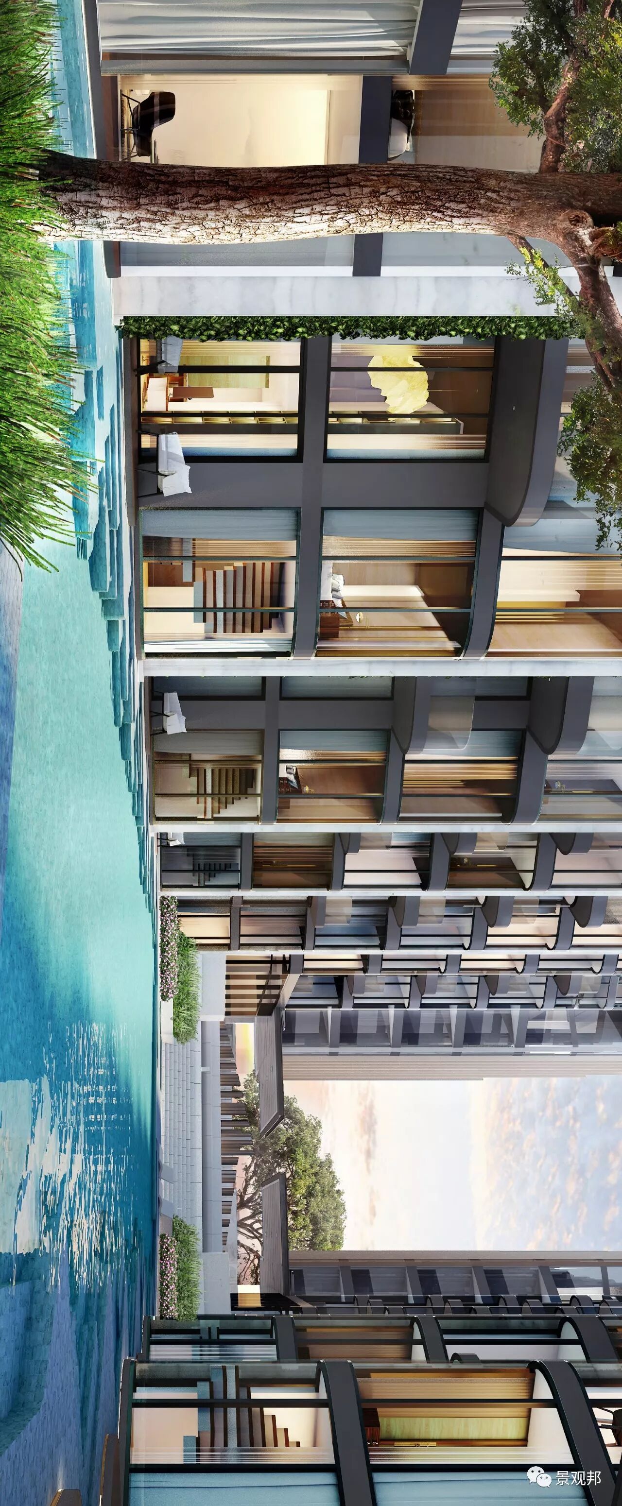 ASHTON RESIDENCE 41 可以说是曼谷前所未有的城市中心奢华隐士,建筑中间贯穿一条长44米的泳池,泳池灵感来源美国德克萨斯洲的巴顿春池,一眼望去宛如进入曼谷的威尼斯,房屋顶层就是集休闲娱乐与一体的空中花园。