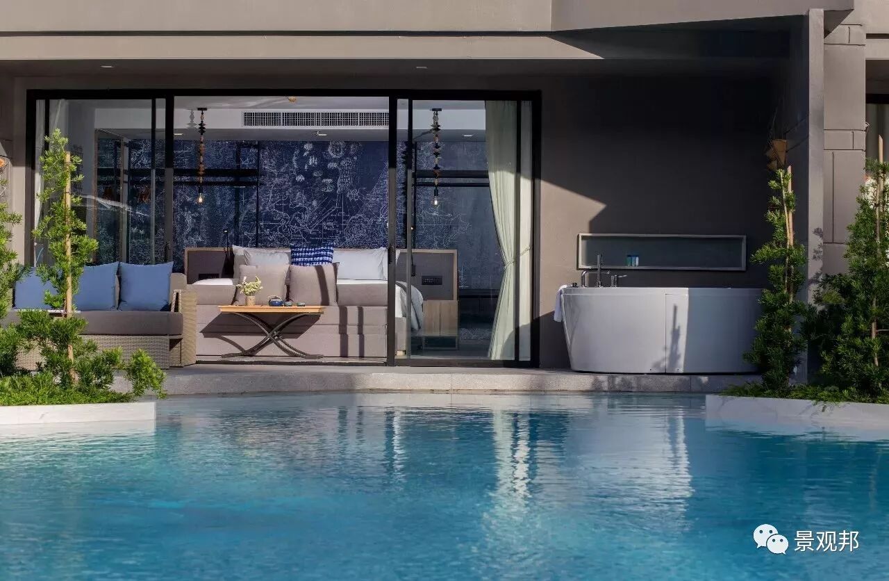 在经历了美式现代和泰式繁复的景观尝试后,Pok没有停止寻找自己的风格,并将其打造成了自己的品牌;相对比欧美设计师的现代风格,POK的设计让人眼前一亮,欧美的设计师过于工业化的线条和只考虑功能和用材的设计,使景观看起来冷酷而缺乏亲合力。而POK的设计,同样简洁,大气的线条,被诠释得充满了优雅的艺术感,这是东方人独有的美感,意境,禅意等等内在修养,才能成就这种优美的现代景观,在此之前从未出现过这样的设计,融合了西方人的理性简洁和东方人的美学智慧,被结合得如此美妙。