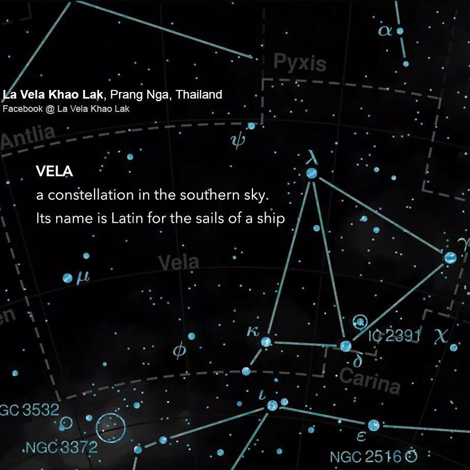 Vela 是船帆座的意思。它指引着海上的船队前行。客户选择它为主题是为了向古老的海港Takola致敬。港口自古就是来自印度,阿拉伯和中国的航海船队主要目的地之一。靠星星指引他们的航路,抵达之后,船队与当地人进行香料和其他产品的贸易交换。经历千年,海上贸易的辉煌时代虽已经过去,文化的多样性确仍在这个港口生活呼吸。充满风情的当地建筑,进口的香料和美食,热闹的人群和热情的音乐,却又毫不打扰想要躲入自然中休息的疲惫游客。这就是开发者所勾画出的场地蓝图。