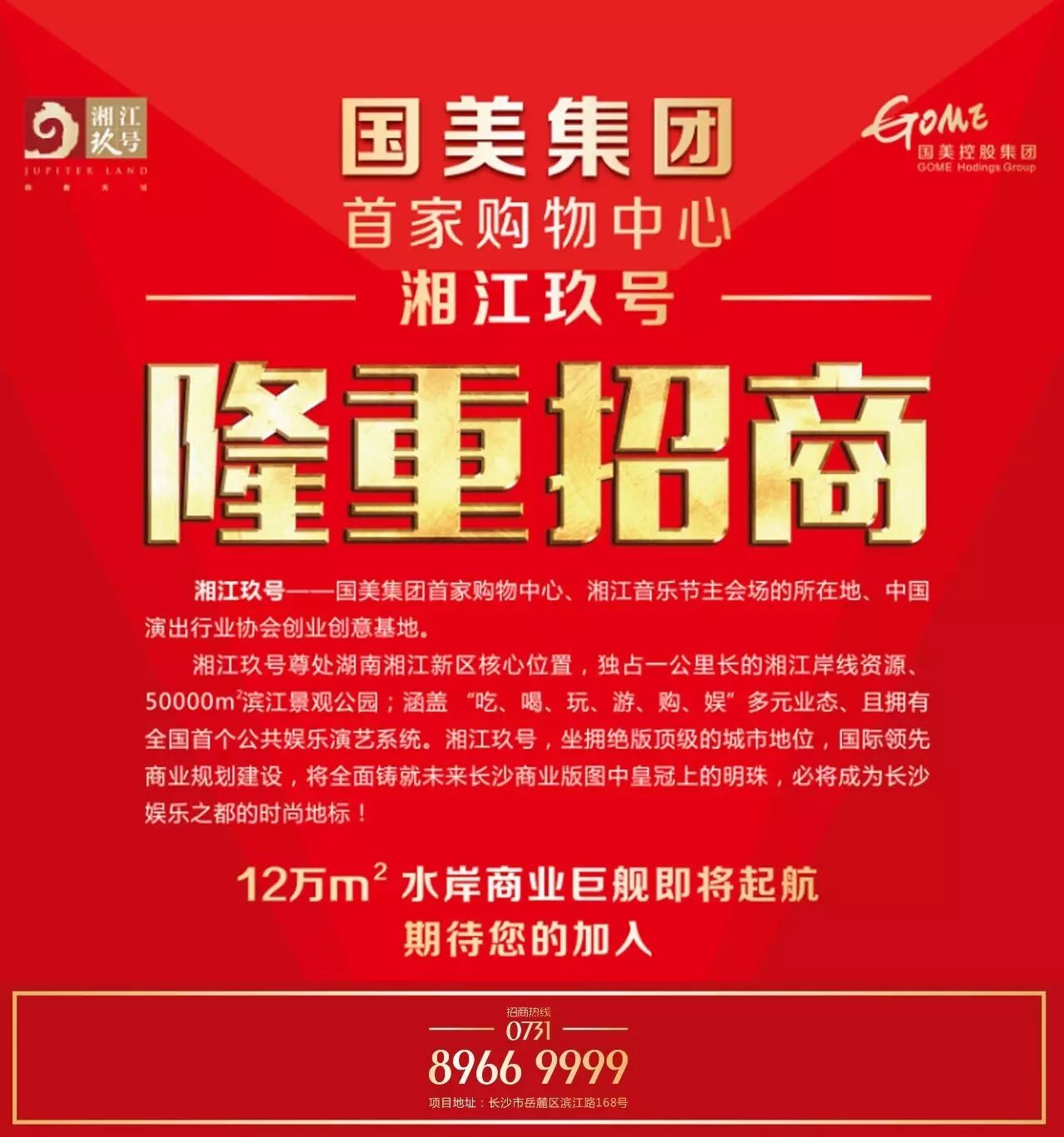 现国美湘江玖号持续火爆招商中!咨询热线:0731-8966 9999