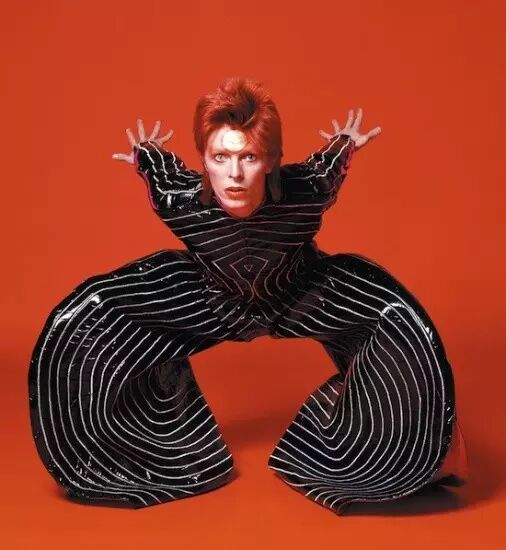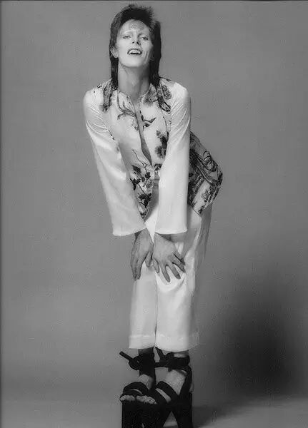当时他头顶五颜六色的爆炸头,有时会穿上华丽的裘皮大衣,有时又会赤裸上身拍摄唱片宣传照,他还尽量把打扮地很中性,剃掉自己眉毛,甚至刻意模糊掉自己男性特征。时至今日,在巴黎服装周的T台上也还能见到类似于大卫·鲍伊的造型和前卫装扮,但没有哪个麻豆能玩出他那样的范儿。