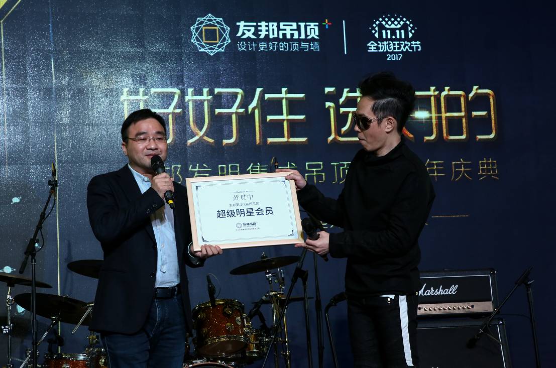 谱曲、作词,音乐上,黄贯中不遗余力地创作,只为给大家带来更动听的摇滚乐。不仅如此,由于黄贯中在接触吉他之前就已接触到了画画,因此自身还散发着绘画艺术家的气息,更曾将摇滚与绘画结合,举办“声色犬戎”画展。他对艺术的执着和对创新的坚持,赋予他如今的成就,而正是对设计的尊重,对原创的认可,让他在众多吊顶品牌中选择了友邦。