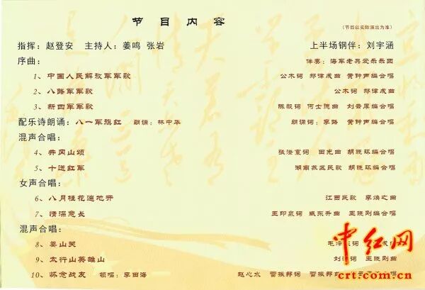 音乐会由中国战略与管理研究会、胡智荣文化基金主办,军星爱乐合唱团、。首席指挥赵登安。姜鸣、张岩主持。