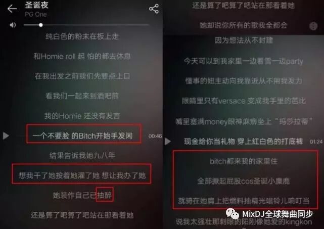 而除了这首《圣诞夜》,在PGOne 的其他作品中,也能看到不少低俗的词语。