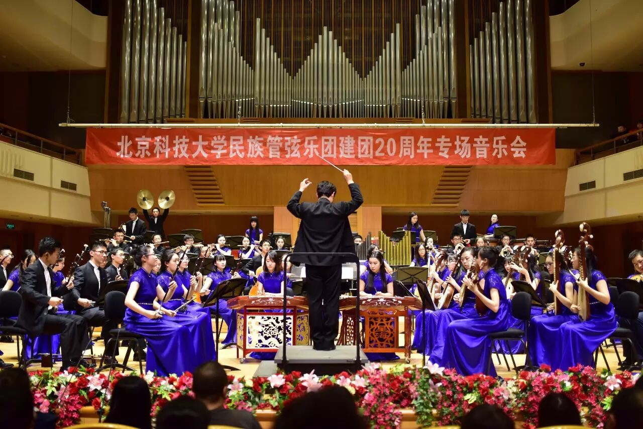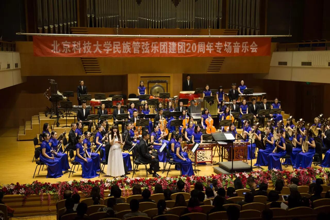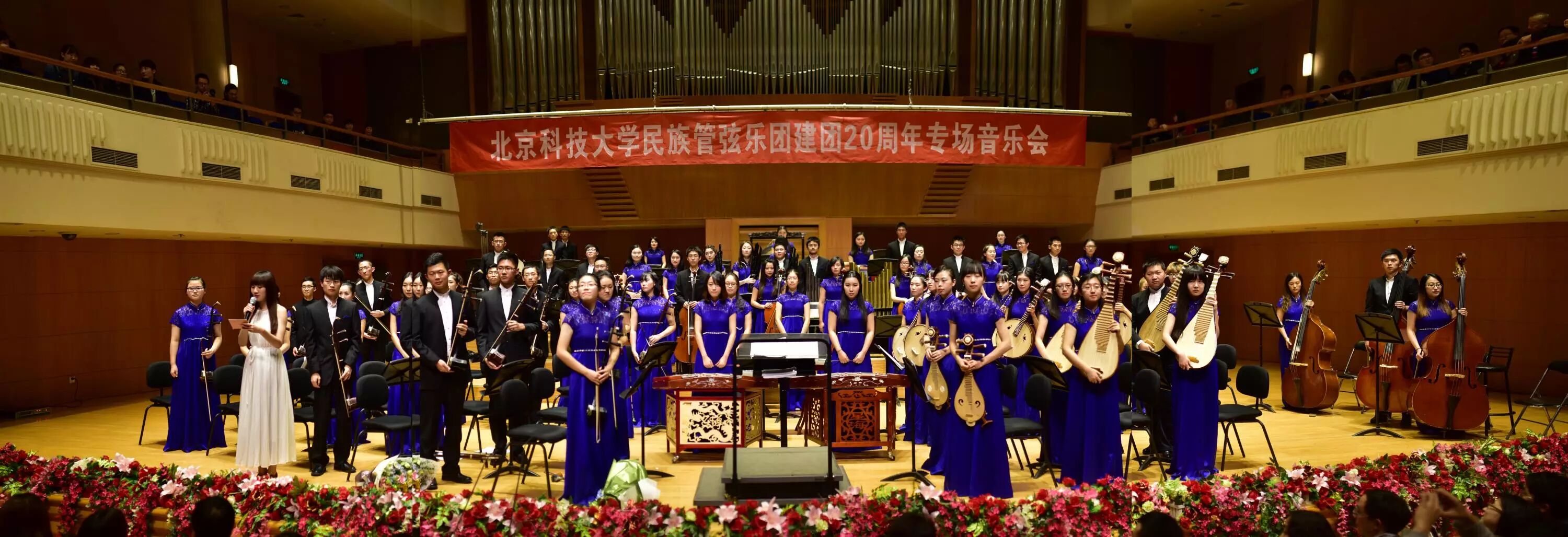 琅华天韵,丝竹之声遥远悠长;鎏音雅乐,北科华章悠扬奏响。北京科技大学民族管弦乐团建团二十周年以来,在学校领导老师的精心培养下不断成长为一个集团结与智慧于一体,感性与艺术相承的大家庭;乐团一直以高质量的业务水平和专业素养在北京及全国各所高校中享有盛誉,并屡次受邀参加各类演出和晚会,获得各界广泛认可,迅速成长为全国高校民乐团中的佼佼者。乐团成员怀抱着对民族高雅艺术的热爱,勤奋执着于民族传统文化的传承。展望未来,民乐团同学会继续继承和弘扬传统民乐,为大家献上更加精彩的演出,学校的艺术普及教育也将会更加完善,创造出一个又一个的辉煌!