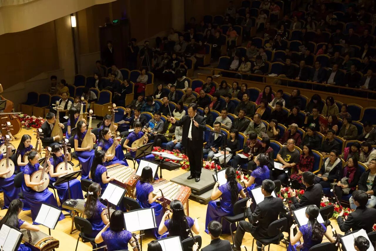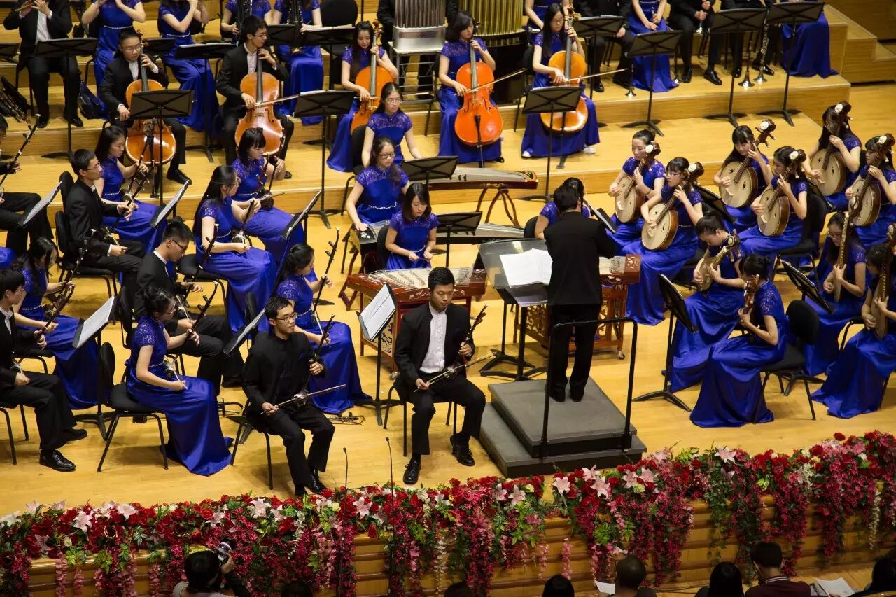 华丽清新、流畅活泼的弹拨声部合奏《三六》余音绕梁,带领观众进入了音乐会的下半场;《乔家大院》、《大宅门》这两首耳熟能详的作品带领我们穿越历史的长廊,体悟风云变幻;《茉莉花》作为中国元素的象征,在民乐团的全新演绎下,看暮春郁绽,闻淡雅轻香;《天下黄河》的磅礴气势感人至深,原生态与交响化共融,体现了炎黄子孙不屈不挠奋勇向前的精神,将演出推向全场最高潮,观众掌声如潮,叫好不断,音乐会在欢腾喜庆的气氛中走向尾声。本场演出受到了在场师生以及校友的一致好评,最后各位领导及校友还走上舞台与演奏员们合影留念。