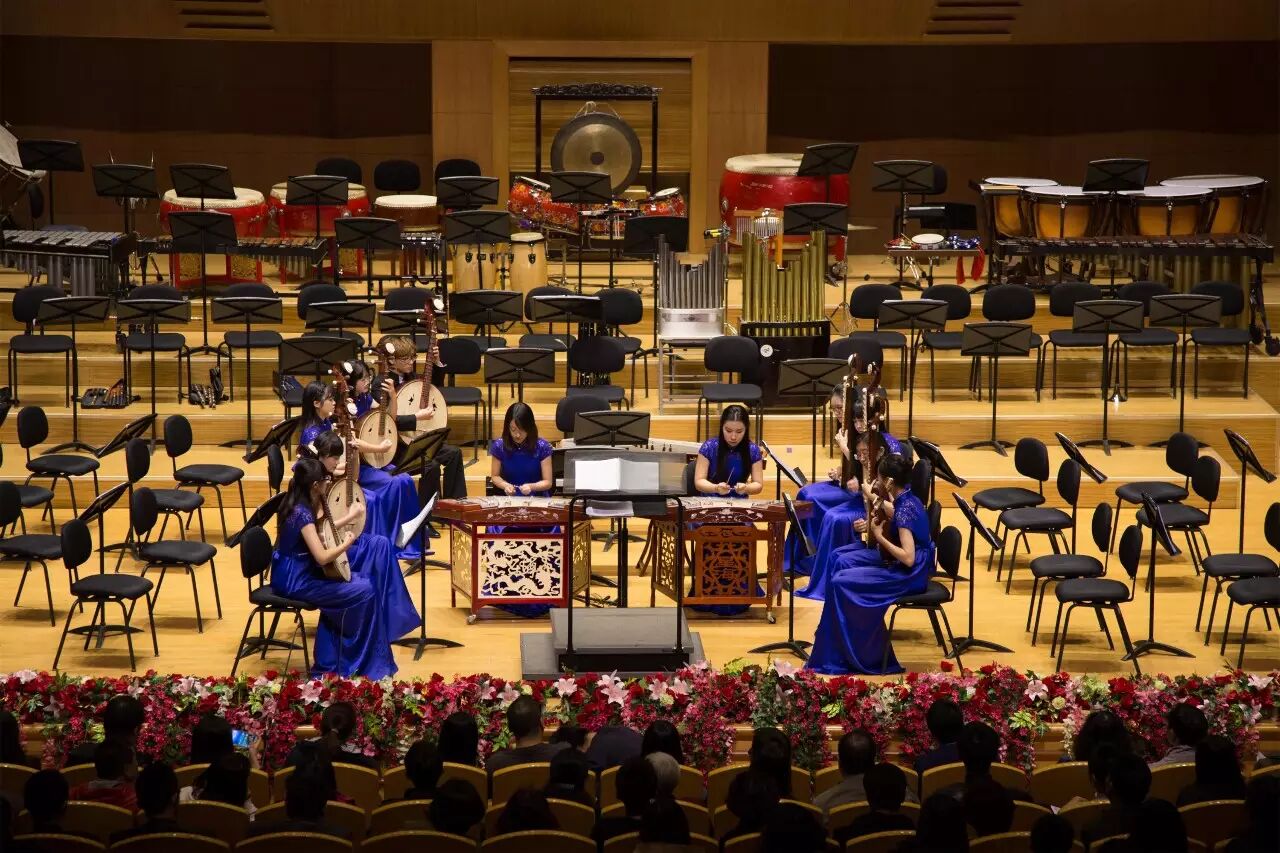 弓弦顿挫谱名曲,丝竹清雅奏华章。伴随着回顾我校艺术教育工作及民乐团发展历史的宣传视频,音乐会缓缓拉开序幕。今年是民乐团建团20周年,同时也是乐团常任指挥韩学周老师执棒十周年,时光荏苒音韵绕梁,在这洒满阳光、满载希望与收获的初秋,清爽的微风掠过心尖带来华美乐章。当台上的灯光再次亮起,伴随着观众们充满期待的掌声,音乐会正式开始。