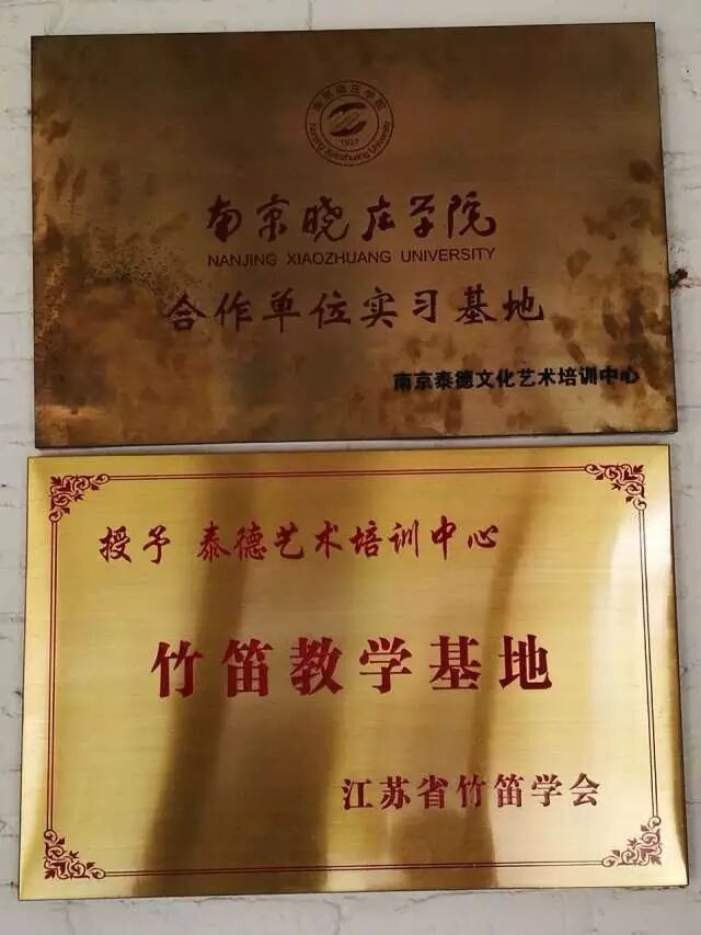 南京晓庄学院合作单位实习基地;江苏省竹笛学会授予的竹笛教学基地