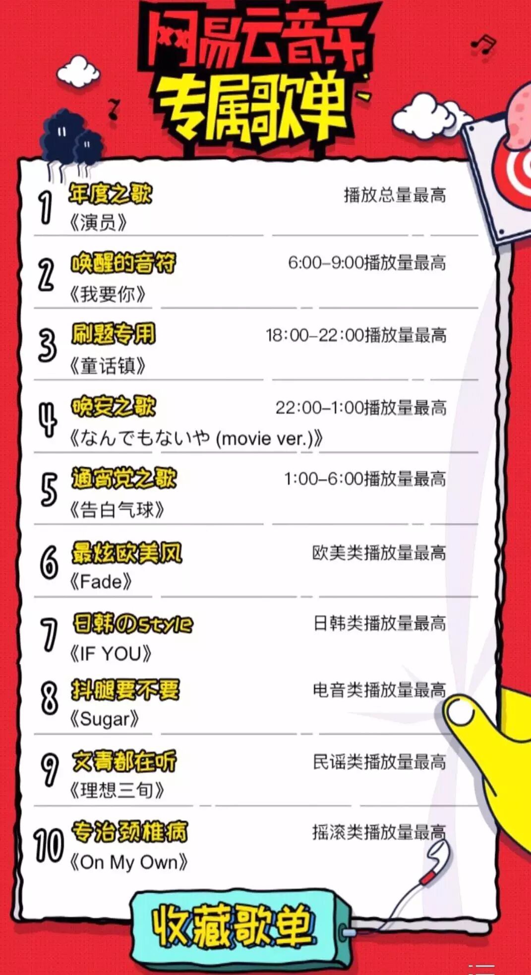 电音类 民谣类 摇滚类播放量最高的歌曲