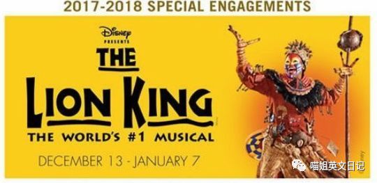 Hello大家好,圣诞节过完啦,喵姐又回来和大家聊英文了。在美国,圣诞节就代表着寒假的开始。为了庆祝这大好的假期,我们一起去看了一场超级赞的音乐剧:The Lion King (狮子王).