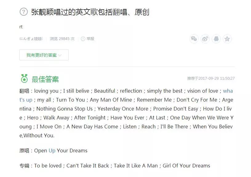 看了张靓颖唱过的英文歌后,不得不感叹她的英文真是66666。