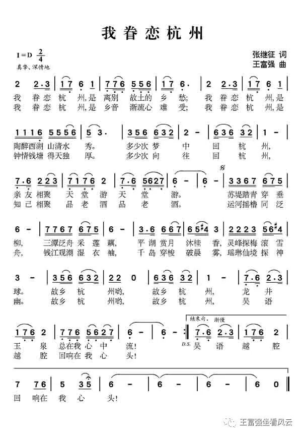 ▲《我眷恋杭州》(张继征词,王富强曲,洪磊唱)
