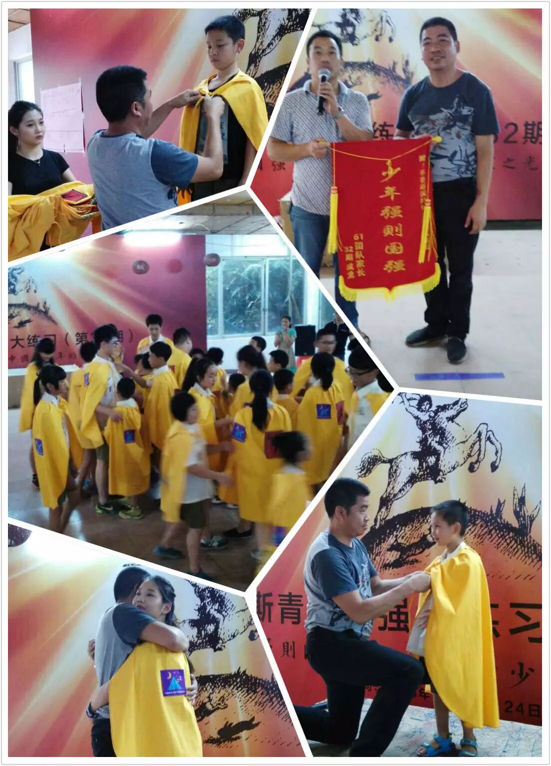 十天的强大练习结束了,小勇士们站在属于自己的人生舞台上,pizza主教练为勇士们披上象征荣誉的营袍!家长也为布鲁斯送上了“少年强,则国强”的锦旗!