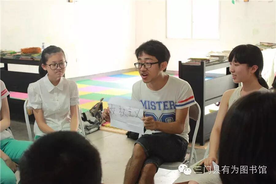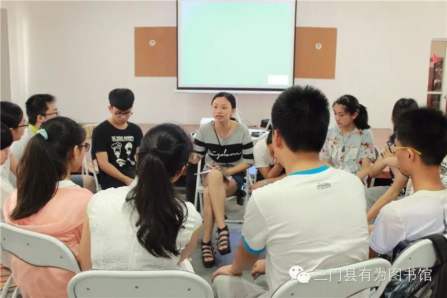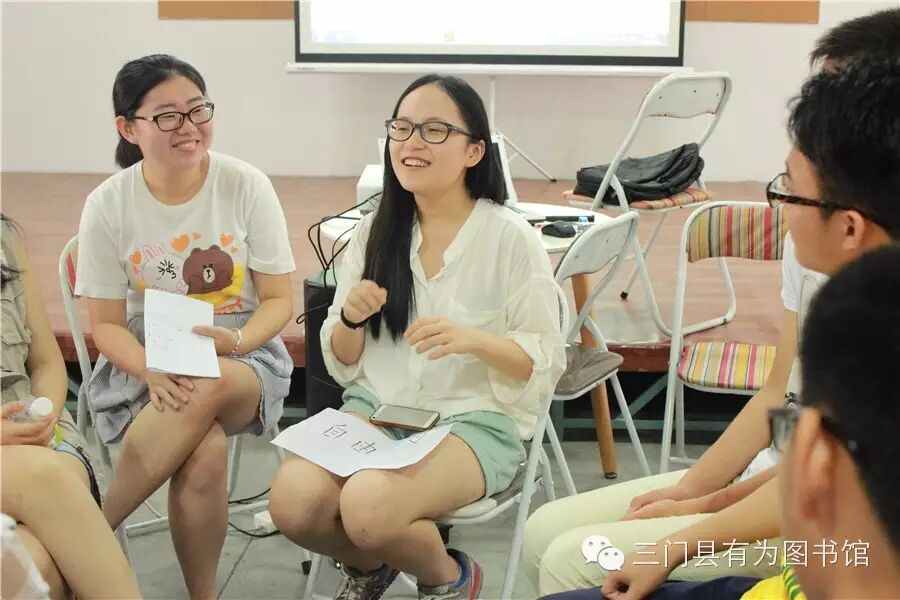 之后是志愿者王春迎主持的真人图书馆,每一个志愿者都是一本“真人图书”,营员们通过听志愿者讲故事以及向志愿者提问进行一场心灵上的交流和旅程。