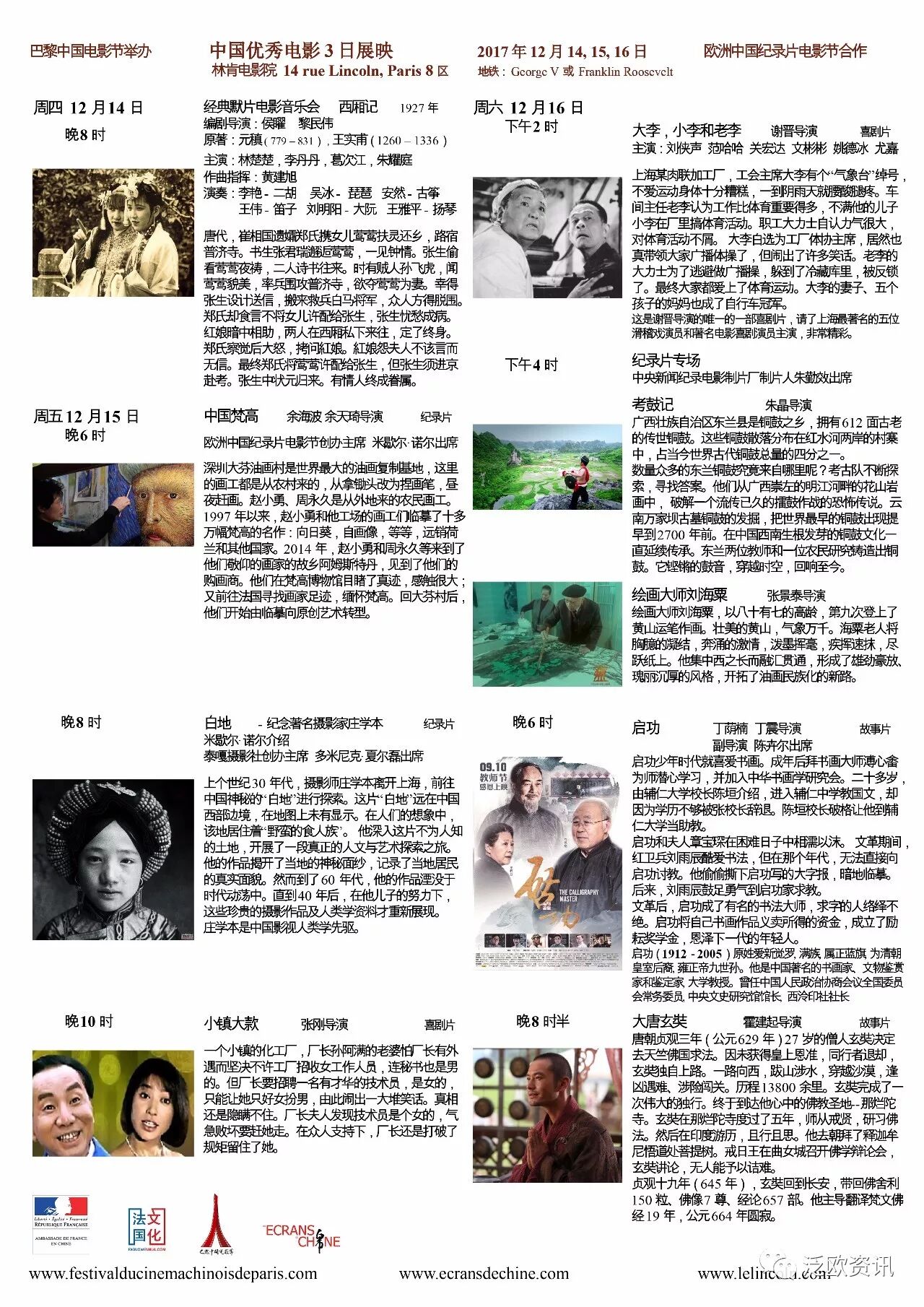 《法国侨报》讯:中国优秀电影联展12月14日起巴黎举办!联展3日!这是巴黎中国电影节与欧洲中国纪录片电影节合作举办的。这是巴黎中国电影节创办主席高醇芳今天告诉记者的。