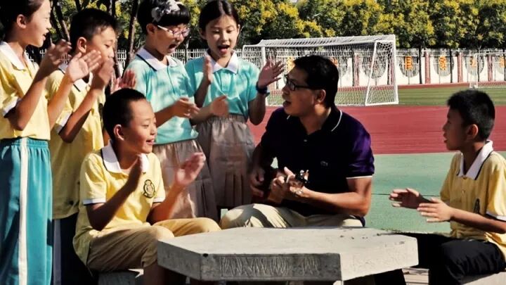 歌曲小样出来之后,张老师拿给孩子们试听,不少孩子跟着唱了几遍,就很快学会并记住啦,这让他备受鼓舞。为了让孩子们同时理解这24个字的深刻内涵,张老师又在歌曲中融入了部分学校老师的解读。同时,张老师还结合自己的跨界特长,采用乐队的形式,最终把作品更具冲击力的展现了出来!