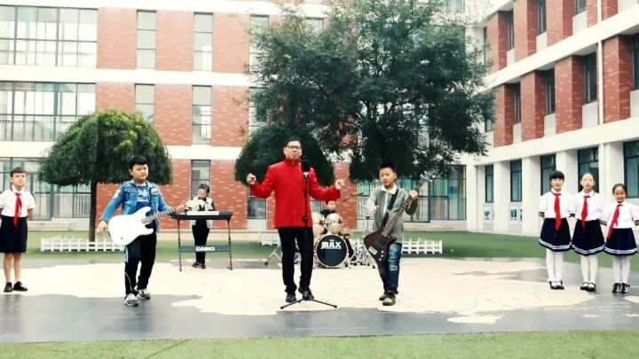 这样的想法让张刚老师和同校的段刚老师(MV的制作导演)一拍即合,两人商量确定了选择这种节奏明快、又时尚易于孩子接受的摇滚音乐创作形式。