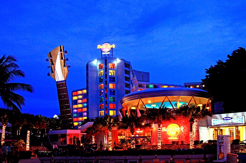 硬石咖啡屋面对海滩,三层楼面。硬石咖啡屋的特色就是夜夜笙歌的现场乐队,酒店住客不必排队,只需在舞厅后门入口处晃一晃通行证,便可以尽情地玩到天亮。这里的咖啡口味香醇,每位游客来到这里都会去品尝一下,而且这里的气氛环境也是非常好的,另外这里靠近海滩,边品尝美味的咖啡边看外面美丽的风景,也十分惬意。