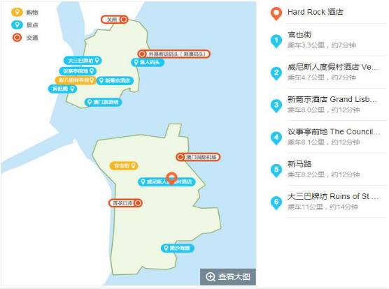 新濠天地提供来往酒店与各口岸的接驳专巴服务,设有以下5条路线: