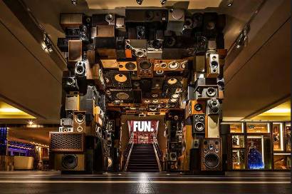 作为主打音乐风格的连锁酒店,从建筑外观的韵律开始,到大堂的吉他墙、巨星珍藏陈列、公共艺术设置以电梯间、房间的细节规划,以及贯穿整个酒店的背景音乐,都充分呼应了其音乐的主题。