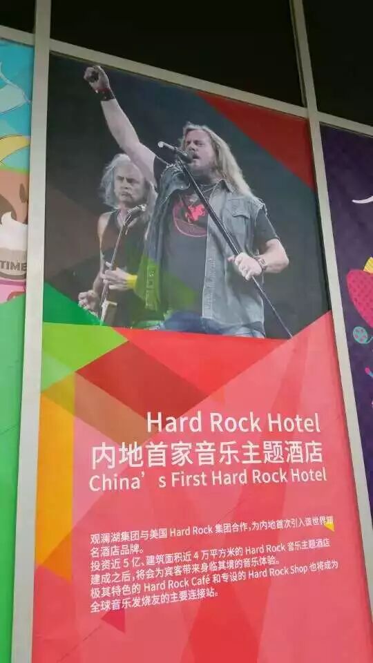 深圳Hard Rock酒店位于深圳观澜湖新城,将拥有22层,280间客房。汇集了Hard Rock咖啡厅、摇滚Spa、餐厅、娱乐酒廊、录音棚、酒吧等。顶层全部为套房,屋顶通过结合泳池、舞台和音乐吧,创造了一个可尽情放松心情,展示和体验摇滚热情的室外派对胜地。整体建筑面积将超过40000平方米。工程项目总投资约5亿元人民币,预计将于2015年开业。
