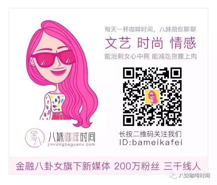 想要成为八妹的好闺蜜吗,扫描下方二维码一键关注,和八妹一起聊聊文艺、时尚、情感,所有你想跟八妹分享的事情。八妹咖啡时间,能治美女心中病,能减吃货腹上肉。