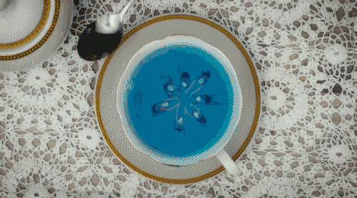 面前的杯中出现花游姑娘