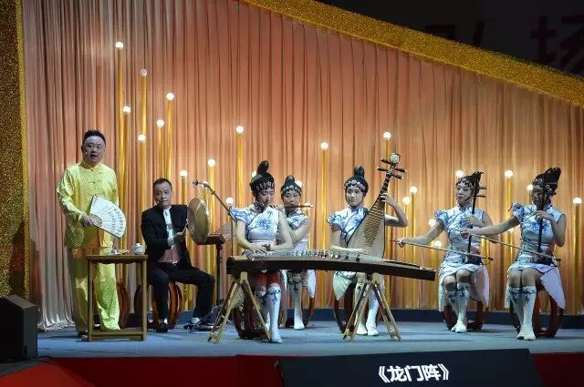 至于东方茉莉女子乐团带来的《龙门阵》,则是这一章节中最出彩的表演。成都人爱喝茶、爱热闹,当然就少不了要摆龙门阵,“偷得浮生半日闲”是成都人的生活智慧,《龙门阵》就是用音乐小品的形式,融入川剧、爵士元素以及乐器拟声的功能,用音乐讲述成都人的休闲生活,表达了作者对家乡的热爱和自豪感。在演出中,乐团的漂亮姑娘用手中的乐器演奏出种种源自市井的声音,时而俏皮,时而稳重。伴随着乐手的演奏,一位身着中式服装的男士,用演唱、表演、配音等形式与民乐相结合,生动有趣地再现了成都的市井生活。