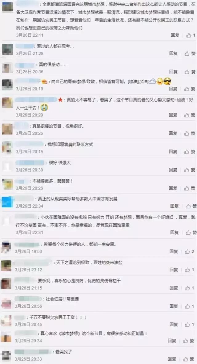 由央视财经频道重磅打造的大型农民工体验真人秀节目《城市梦想》,被外界称为“高管变形记”。3月26日晚播出第六集《钢筋工的音乐梦》,受到各界广泛点赞,很多观众表示“流着眼泪看完了节目”。