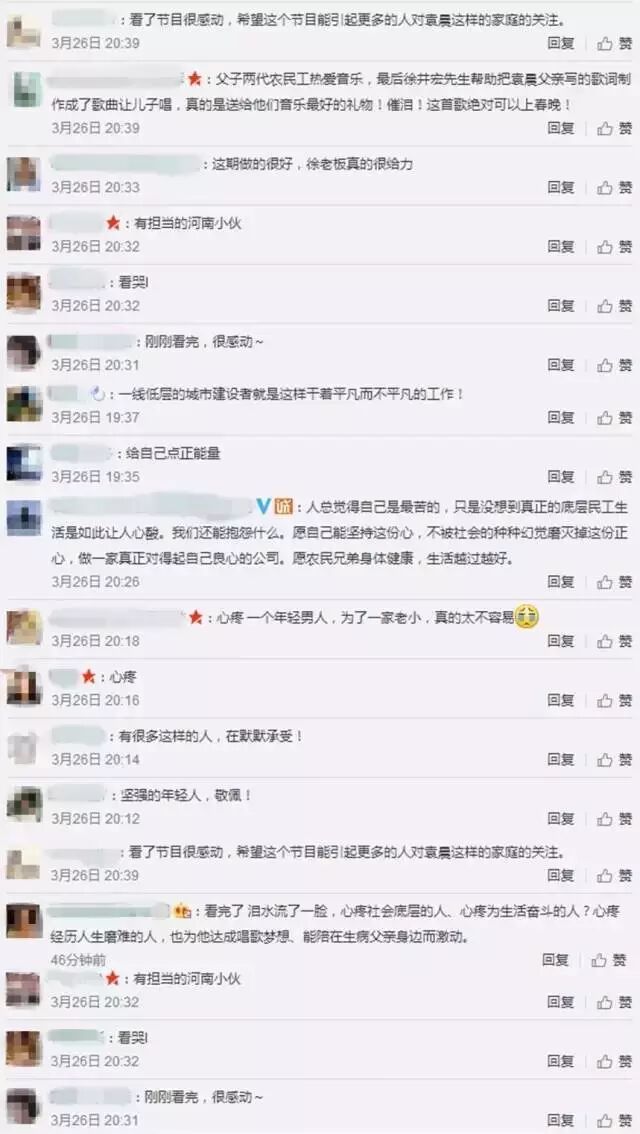 节目最后,徐井宏帮袁晨和他父亲圆了音乐梦,帮袁晨找了份离家近的电动车厂工作,为这个苦难的家庭带去了温暖与关怀。而袁晨一家带给他的,更是深深的感动。他在直播时和自己的朋友圈里都说了同样的话: