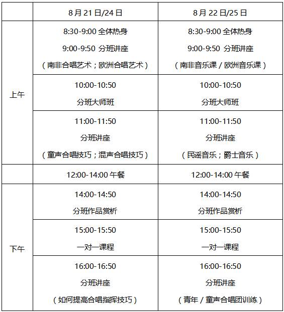 合唱音乐训练营的课程分为两场,两场授课内容相同,参与者可根据时间灵活选择。