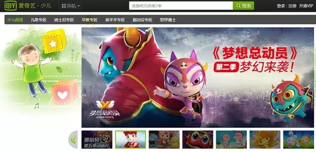 登陆爱奇艺少儿频道首页大图推荐