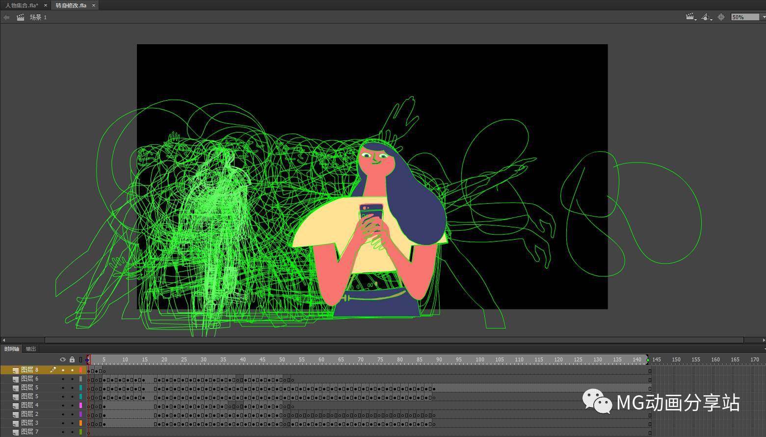 眼睛到女主场景的部分,这一段主要运用逐帧的方式,在下面的图里有工程截图