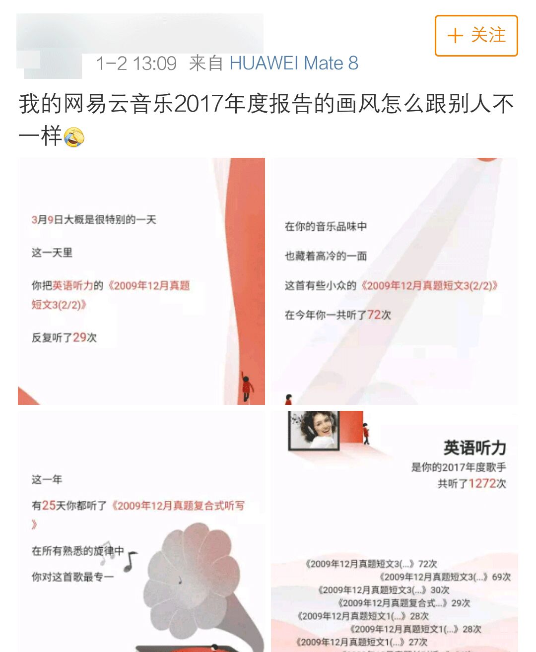 大家纷纷晒出属于自己的网易云音乐年度榜单