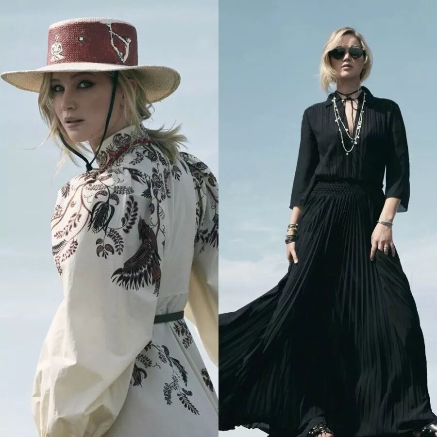 由摄影师Stas Komarovski掌镜拍摄的Dior广告中,大表姐Jennifer Lawrence完美演绎Dior 2018早春度假系列广告,化身西部仙女在湛蓝的天空下展现自信优雅的潇洒之美。