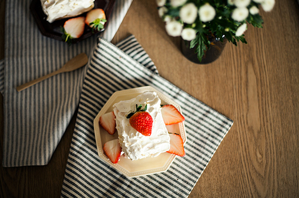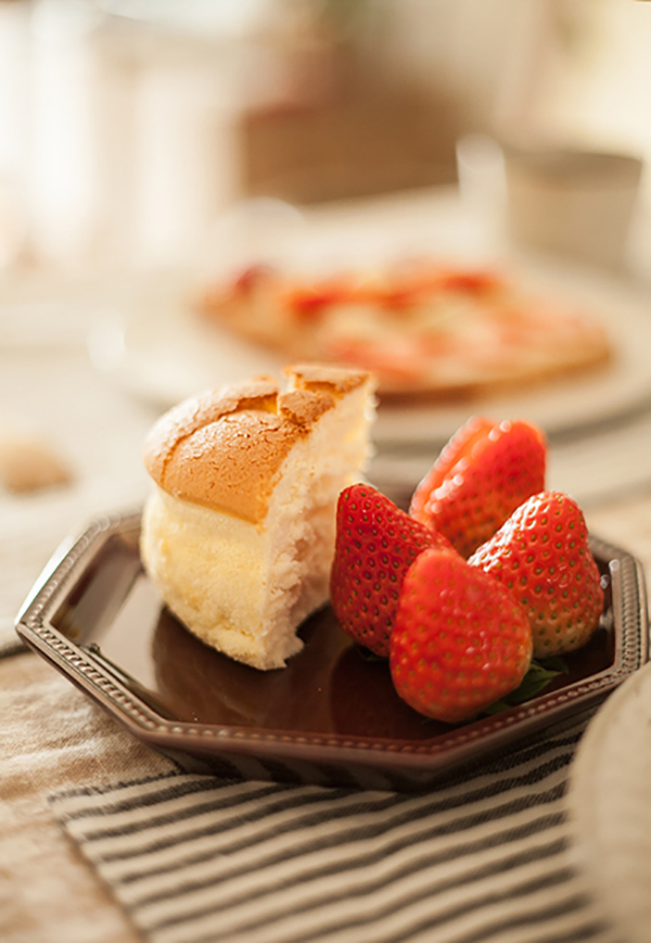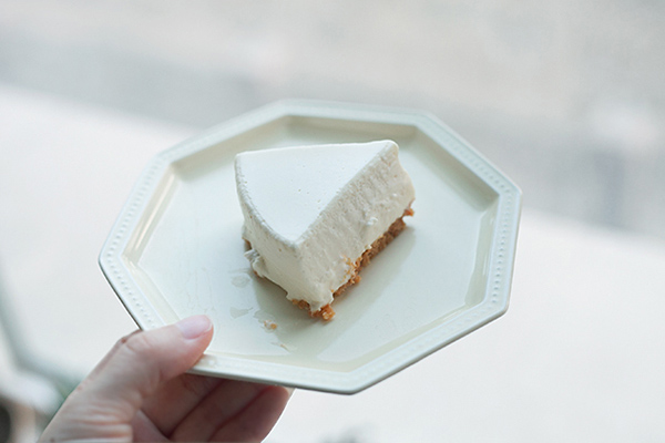 那个甜品工作室是开放式厨房,有一个大落地窗户,有一个很大的甜品桌子——因为觉得大大的桌子能把认识不认识的人都聚集起来,来吃的人能坐在一起、一起分享。