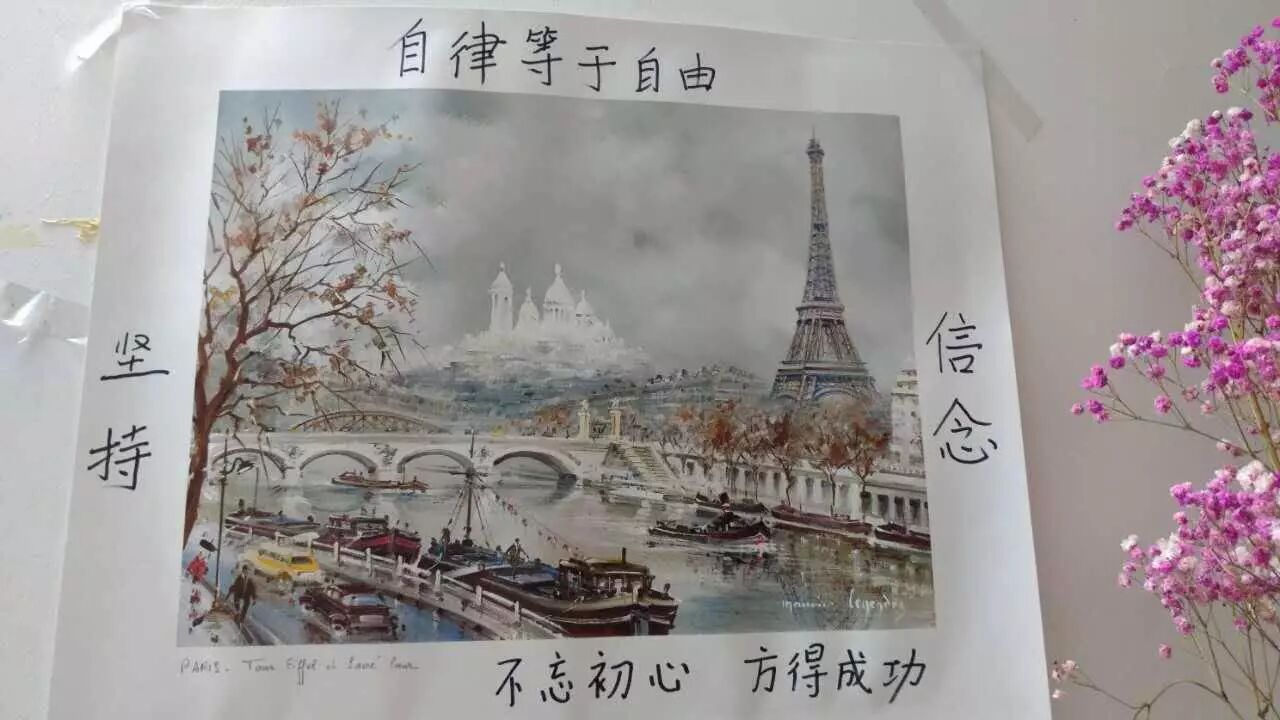 在钢琴上方,他为孩子写了一句箴言:自律等于自由。