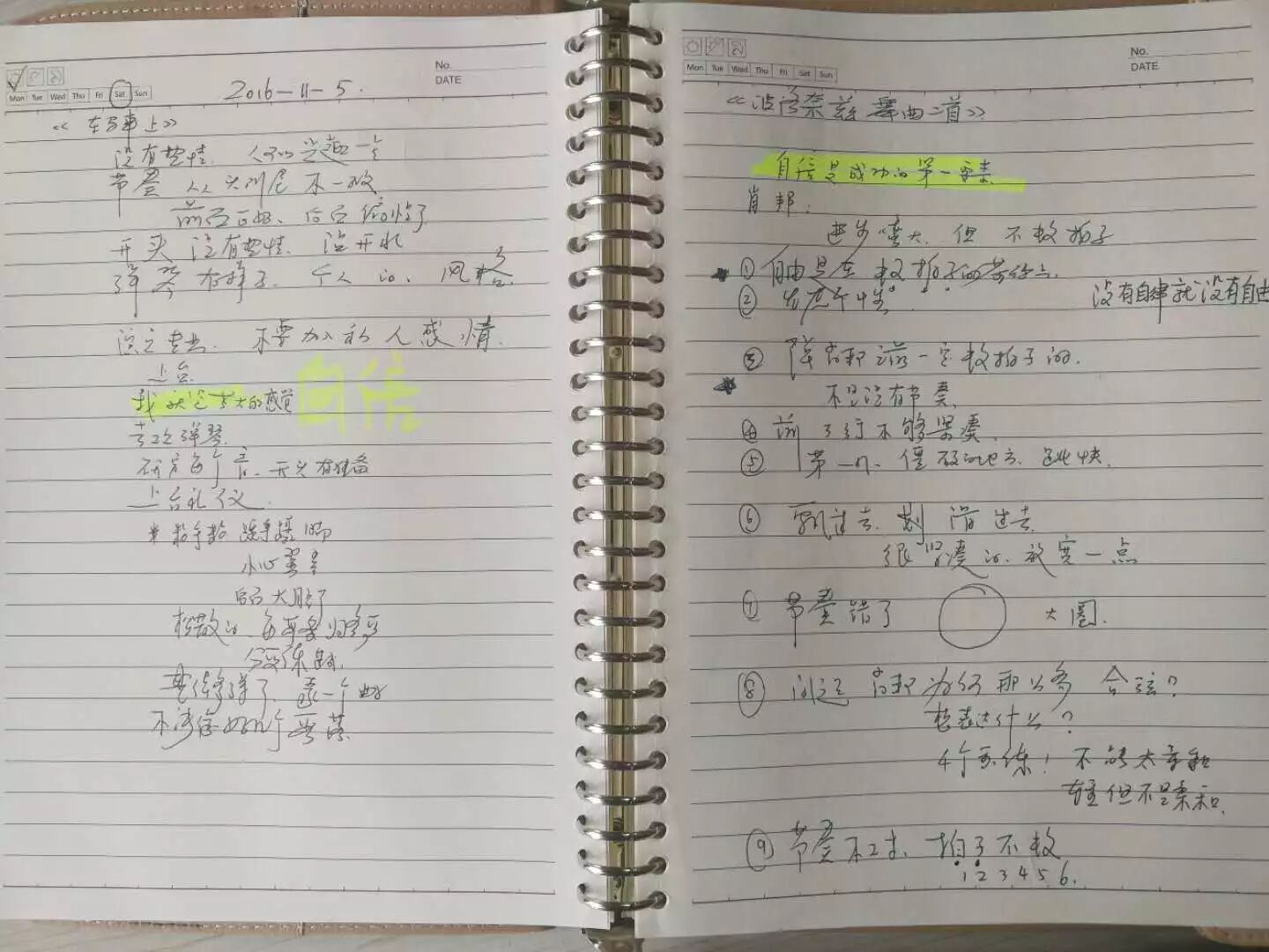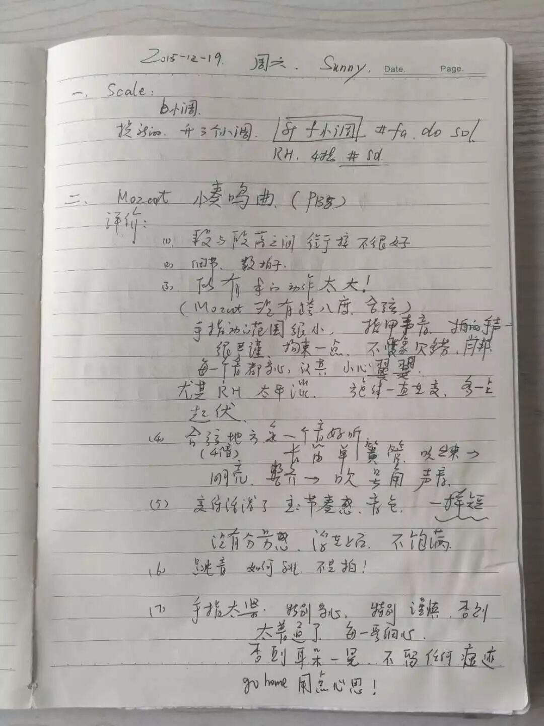 这是韩立诚的爸爸记录的钢琴课笔记——
