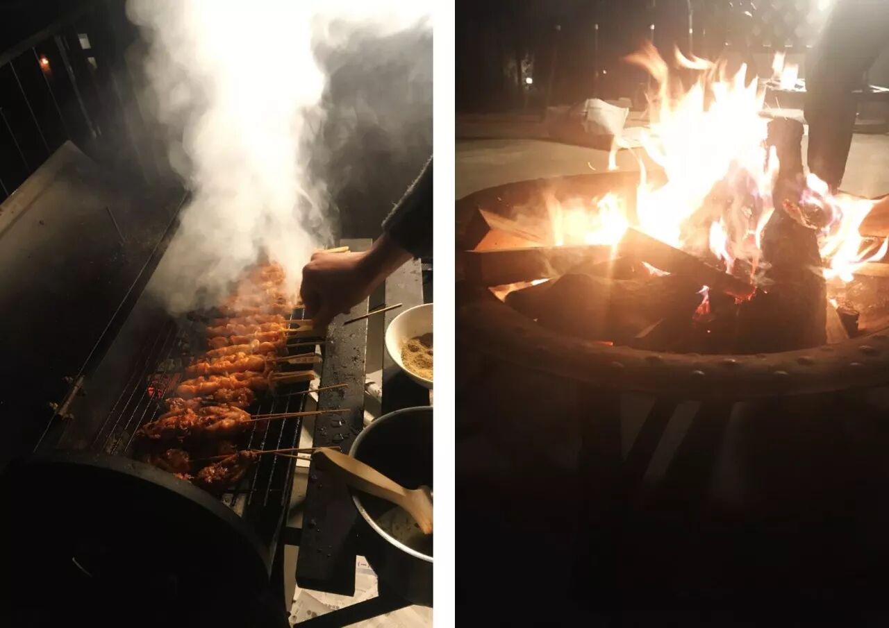 不一会儿,室外的烧烤架子与篝火也备好了,食物被炙烤出的独特香气和篝火升腾起的暖意,都让这个派对夜晚更令人难忘。