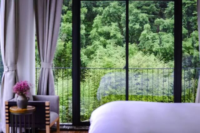 Check-in完毕,入住房间,九希的每一间房都引景入室,180度以上的全景落地窗,让我即使在室内,也有被大自然包围的感觉。