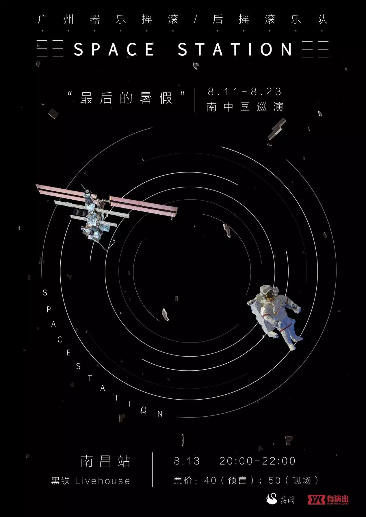 来自广州的器乐摇滚,后摇滚乐队Space Station将于8月13日在黑铁Livehouse举办专场演出。Space Station将会利用吉他、贝斯、鼓这三种乐器在百来平米的狭小空间内创造出一个属于外太空的世界。