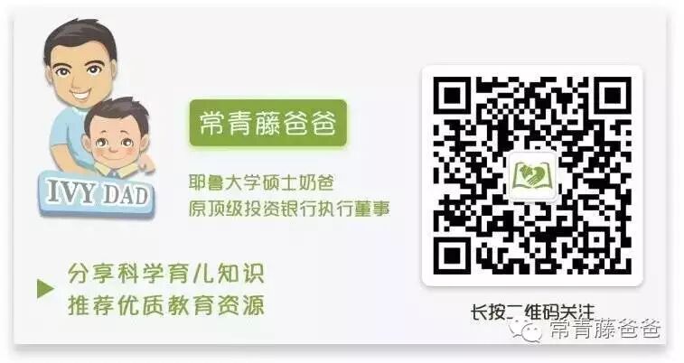 本公众号由耶鲁大学毕业、在世界顶级投行工作多年的奶爸运营,旨在分享科学育儿知识和高质量的教育资源,欢迎关注。