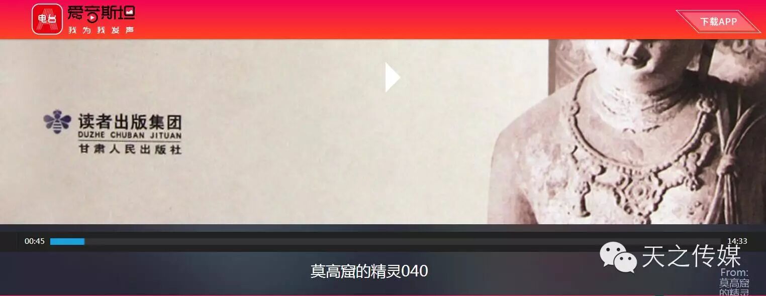 全国五个一工程获奖作品,王家达著,由全国十大小说演播艺术家:闻佳播讲的《莫高窟的精灵》现在您就可以下载【爱音斯坦】手机客户端或登录PC端下载收听!