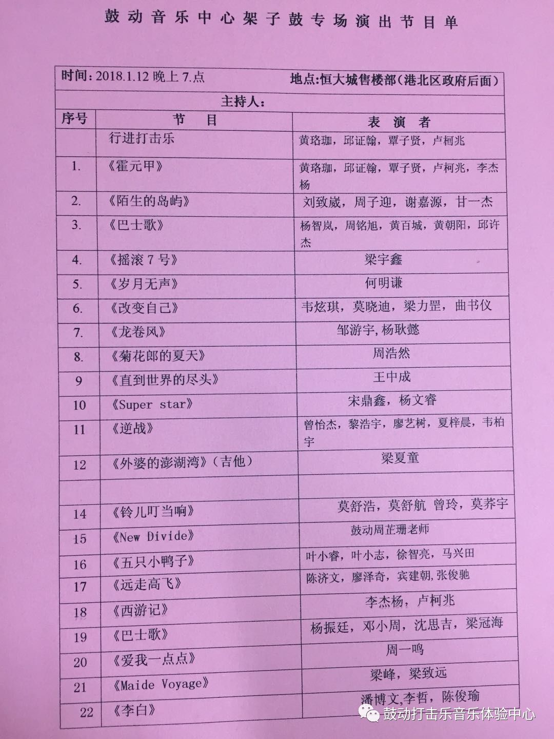 鼓动打击乐音乐中心一年一度的大型架子鼓文艺晚会来啦!等你来狂欢!此时此刻正是展示学员学习成绩的汇演,老师辛勤付出的成果,每一次的展演都是为了累积丰富的舞台经验,都是在展示我们学员健康积极向上的学习态度和自信的成长!