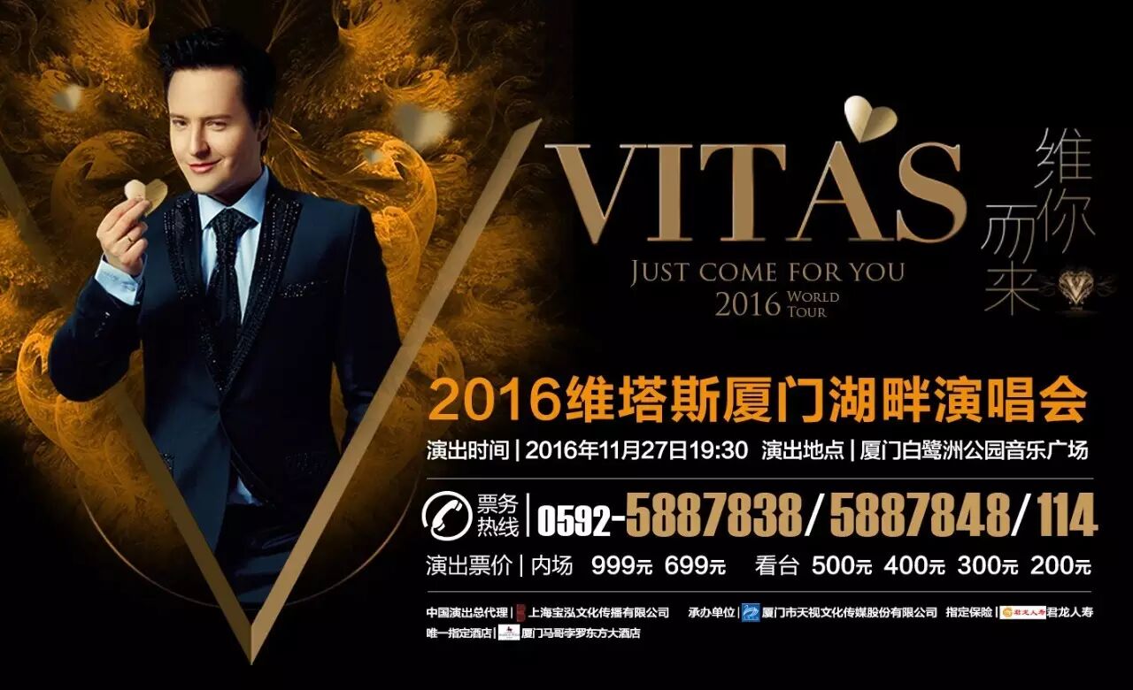 即将开始的维塔斯演唱会兰州站、西安站、福州站、厦门站,