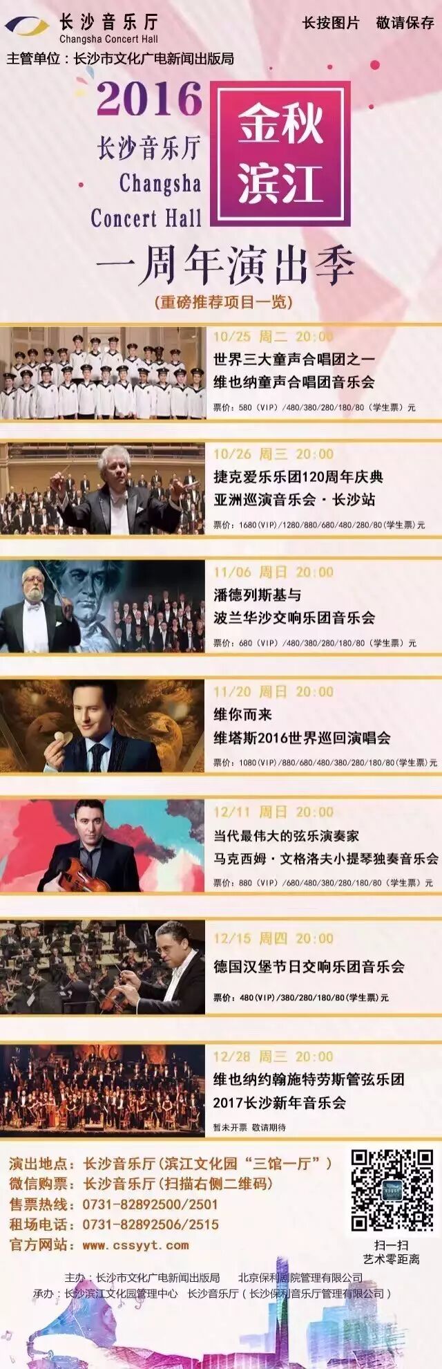 而且,这一场音乐会免费向所有公众开放。你可以在同去后台留言:姓名+电话+职业+人数,得到小管家回复的朋友们就可以在演出当日前往长沙音乐厅领票入场。